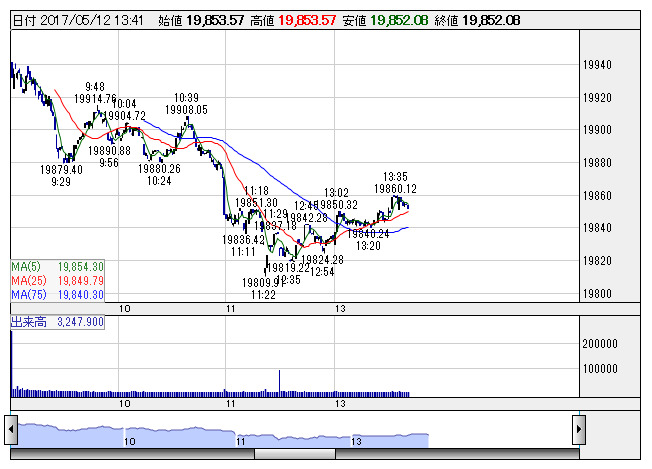 【市況】14時の日経平均は111円安の1万9850円、ソフトバンクが22.47円押し下げ