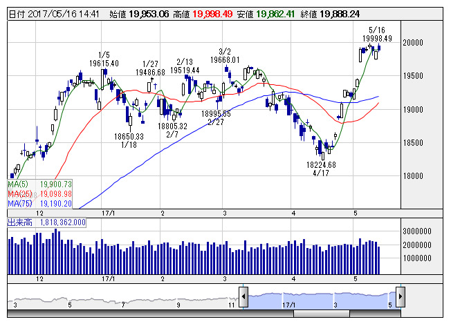 【市況】日経平均16日大引け=3日ぶり反発、49円高の1万9919円