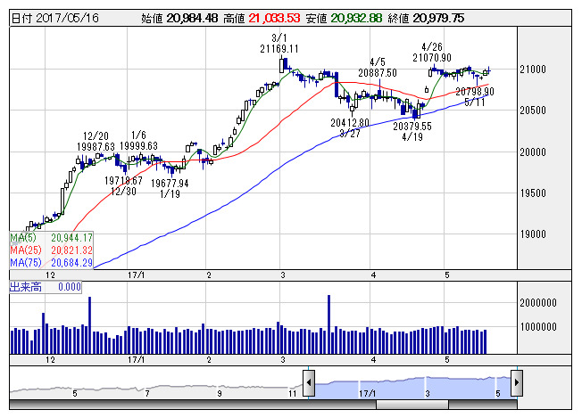 【市況】米国市場データ NYダウは2ドル安と反落 (5月16日)