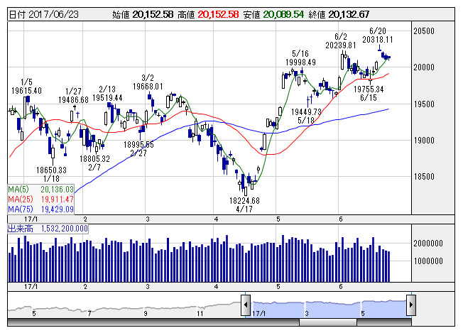また、国内では株主総会シーズンとなるなか、機関投資家は動きづらい状況である。7月2日には都議会議員選挙の投開票となる。小池氏が代表の「都民ファーストの会」が、選挙協力する公明党などの支持勢力と合わせ都議会の過半数を獲得するかが焦点となる。先週、安倍内閣の支持率が49%に急落し、自民党の支持率も40%に下がった。自民党の苦戦は織り込みつつあるだろうが、予想以上に苦戦した場合、安倍首相の政策基盤が揺らぐ可能性も考えられ、世論調査などメディア報道に振らされやすくなりそうだ。