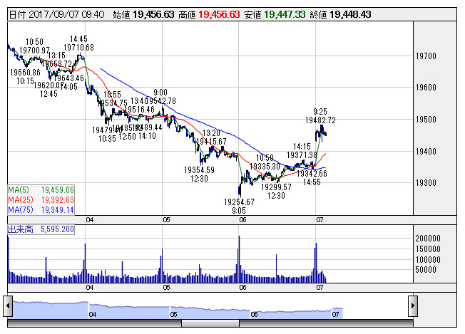 【市況】10時の日経平均は105円高の1万9463円、スズキが7.00円押し上げ
