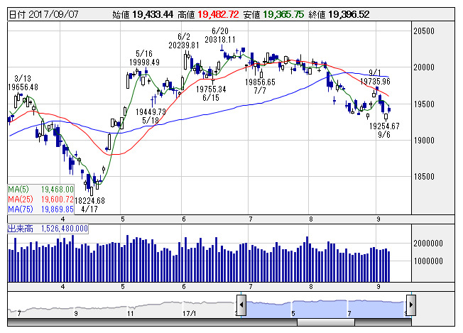 2017年09月08日07時32分 【市況】シカゴ日経平均先物 大取終値比 20円高 (9月7日) 日経平均 <日足> 「株探」多機能チャートよりシカゴ日経225先物12月限 (円建て) 19270 ( +20 ) シカゴ日経225先物12月限 (ドル建て) 19325 ( +75 ) ※( )は大阪取引所終値比 株探ニュース