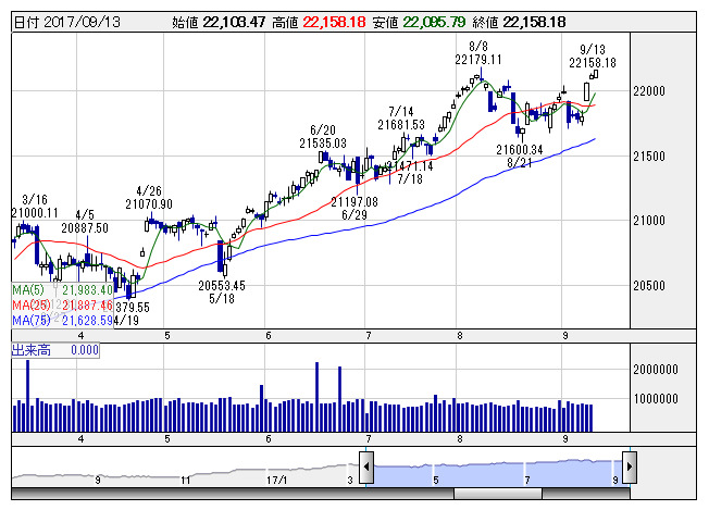 NYダウ <日足> 「株探」多機能チャートより[強弱材料]