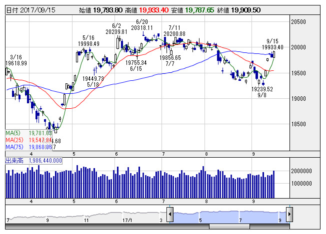 2017年09月19日07時26分 【市況】シカゴ日経平均先物 大取終値比 200円高 (9月18日) 日経平均 <日足> 「株探」多機能チャートよりシカゴ日経225先物12月限 (円建て) 19990 ( +200 ) シカゴ日経225先物12月限 (ドル建て) 20015 ( +225 ) ※( )は大阪取引所終値比 株探ニュース