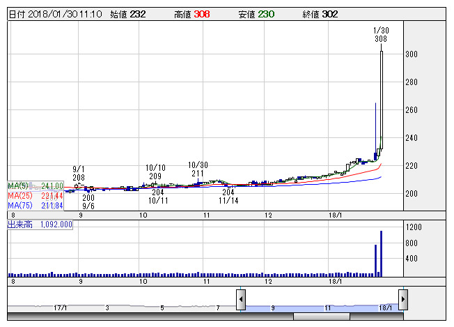 【材料】前場のランキング【寄付からの値上がり率】 (1月30日)