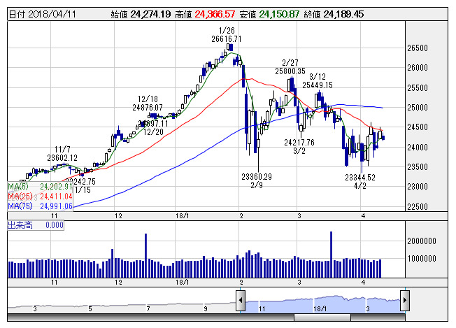 NYダウ <日足> 「株探」多機能チャートより[強弱材料]