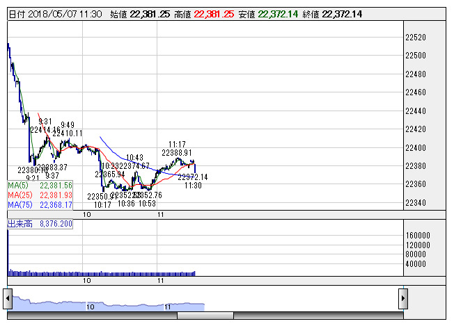 日経平均 <1分足> 「株探」多機能チャートよりきょう前場の東京市場は寄り付き日経平均が高く始まったものの買いが続かず、すぐにマイナス圏に沈んだ。その後も売りに押され下値を探る展開を強いられた。一時120円強下げる場面もあったが、前引けにかけてやや下げ渋った。前週末の米国株市場でNYダウなど主要指数が大幅に上昇したものの、米長期金利の上昇一服を背景に外国為替市場で1ドル=109円台を下回るドル安・円高に振れたことで主力株中心に逆風となっている。本格化する決算発表を見極めたいとの思惑も買い手控えムードを助長した。