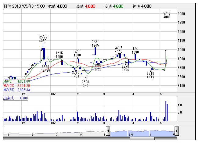 日本電通 <日足> 「株探」多機能チャートより―決算で買われた銘柄! 上昇率ランキング―