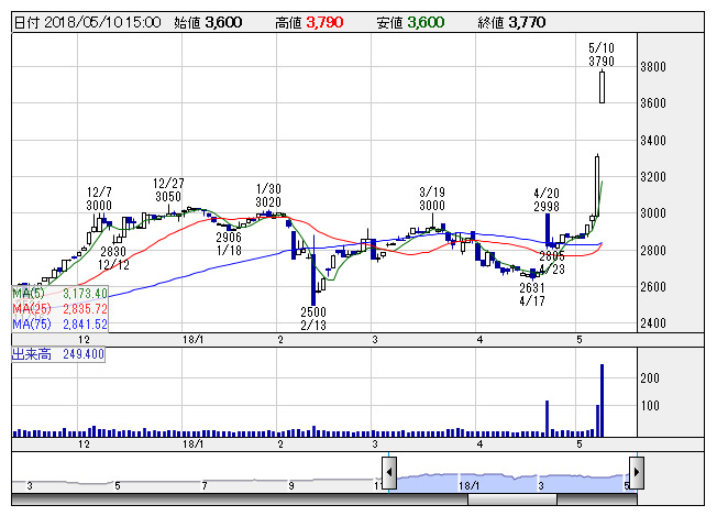 西部電工 <日足> 「株探」多機能チャートより―決算で買われた銘柄! 上昇率ランキング―
