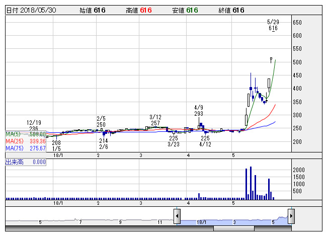 やまねメディ <日足> 「株探」多機能チャートより30日前場 ストップ高: 6銘柄 ストップ安: 0銘柄 (気配、一時を含む)
