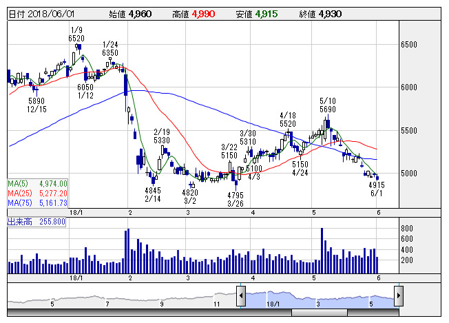 ALSOK <日足> 「株探」多機能チャートより※この業績予想は2018年5月19日に執筆されたものです。最新の情報が反映されていない場合がありますのでご了承ください。