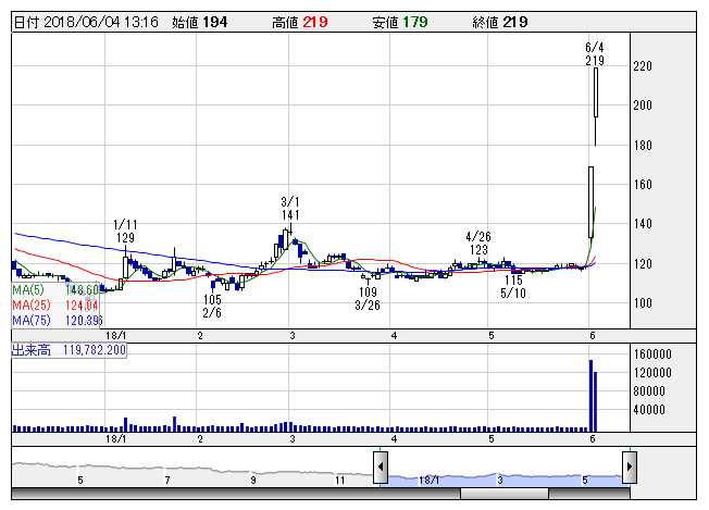 日本通信 <日足> 「株探」多機能チャートより日本通信<9424>は連日の急伸で上昇率トップ。同社のフィンテックプラットフォームが、金融庁の「FinTech実証実験ハブ」の支援案件として決定されたことが引き続き材料視されている。2営業日での上昇率は一時84%にも達している。値頃感の強さから短期資金が流入しやすい中、日証金が1日に貸借取引の申込停止措置を実施すると発表したこともあり、短期的な需給妙味が一段と強まる状況にもなっているもようだ。