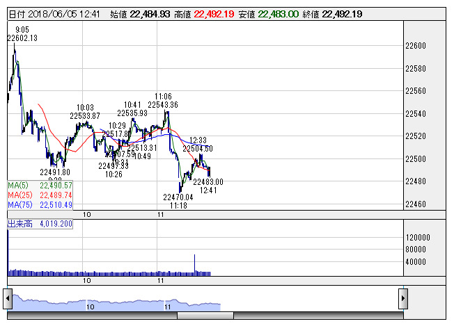 【市況】13時の日経平均は21円高の2万2497円、ソフトバンクが15.03円押し上げ