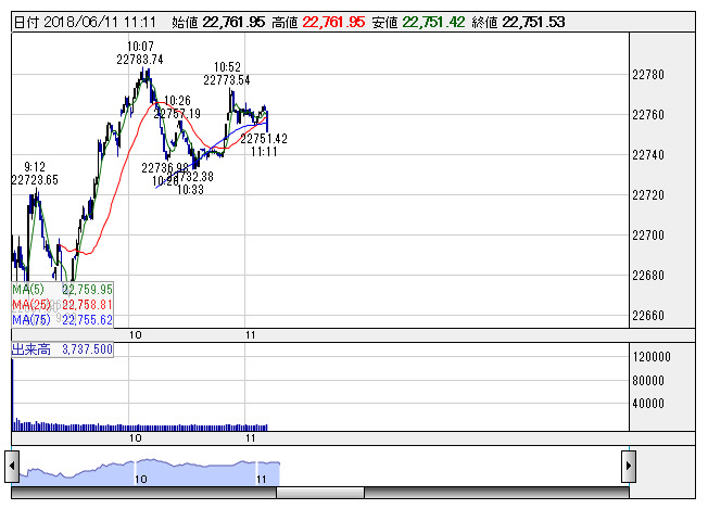 【市況】日経平均11日前引け=反発、68円高の2万2762円