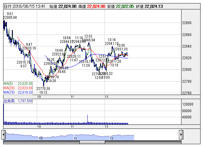 【市況】14時の日経平均は80円高の2万2819円、ファストリが50.09円押し上げ
