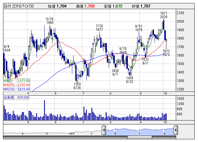 エスプール <日足> 「株探」多機能チャートより3日大引け後に決算を発表した銘柄のなかから、業績好調や配当増額など市場で評価される可能性の高い銘柄を取り上げた。