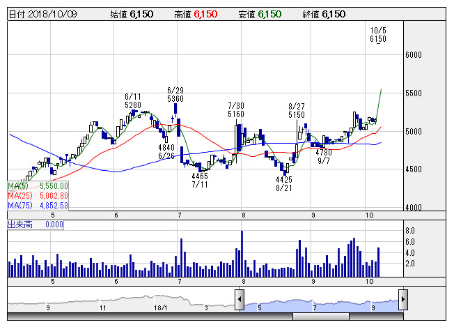 前日にストップ高を演じた多木化学 <4025> が前場はストップ高買い気配のまま取引を終えた。また、ベクター <2656> や、「今期経常を4倍上方修正」と報じられた小島鉄工所 <6112> は一時ストップ高まで買い進まれた。