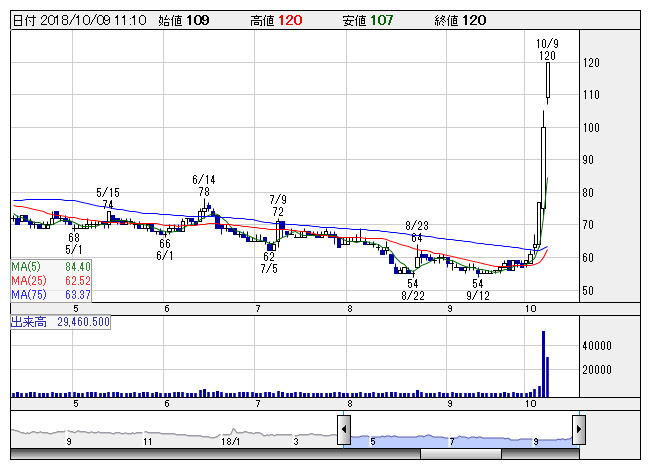 【材料】前場のランキング【値上がり率】 (10月9日)