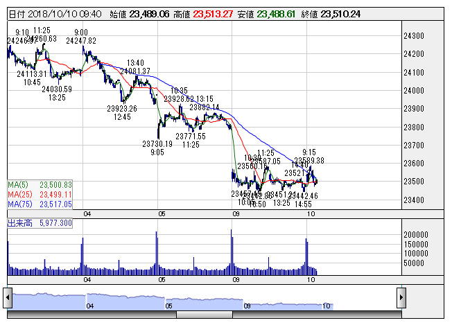 【市況】10時の日経平均は64円高の2万3533円、ファストリが36.31円押し上げ
