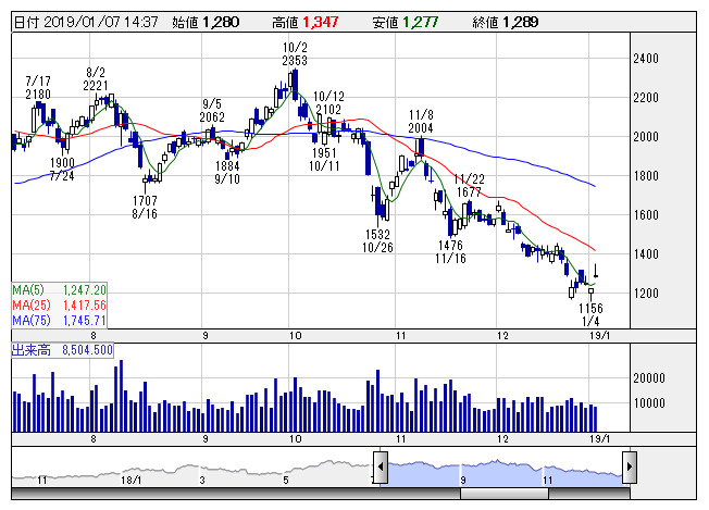 東海カ <日足> 「株探」多機能チャートより4日の日経産業新聞で「東海カーボンは2019年、電炉で鉄スクラップを溶かすのに使う『黒鉛電極』の販売価格を市況連動型で決める新方式を導入する」と報じられた。足もとの黒鉛電極の販売価格は中国需要を背景に急騰しているが、需要の波が大きく、個別交渉型の従来方式だと需給緩和時に急な価格下落も起こり得ることから、新旧の値決め方式を併用して減収リスクを分散させるのが目的という。