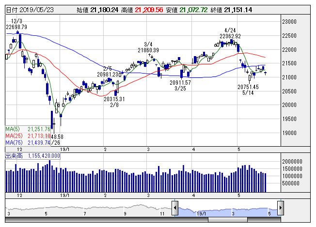 【市況】直近安値試す可能性も/日経225・本日の想定レンジ