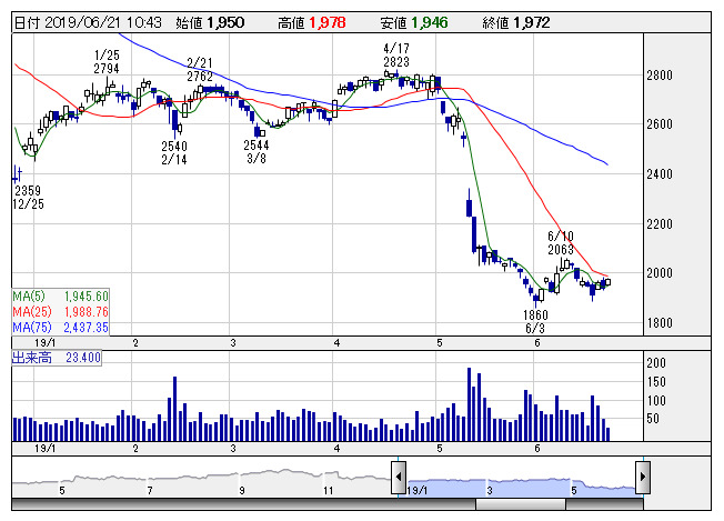 加藤製 <日足> 「株探」多機能チャートより■財務省 : 6月21日受付