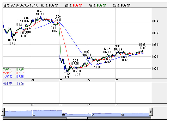 2019年07月08日09時01分 【通貨】外為:1ドル108円47銭前後とドル高・円安で推移 米ドル/円 <5分足> 「株探」多機能チャートより 8日の外国為替市場のドル円相場は午前9時時点で1ドル=108円47銭前後と、前週末午後5時時点に比べ43銭のドル高・円安。ユーロ円は1ユーロ=121円76銭前後と6銭の小幅なユーロ高・円安で推移している。 株探ニュース