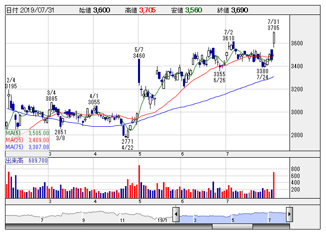 20年3月期通期業績予想は、第1四半期に受注した下期売り上げ計上予定の中央官庁向け大型プロダクトの販売を見込み、売上高を従来予想の2800億円から2860億円(前期比7.8%増)へ上方修正した。なお、営業利益272億円(同5.9%増)、純利益180億円(同5.2%増)は従来見通しを据え置いている。