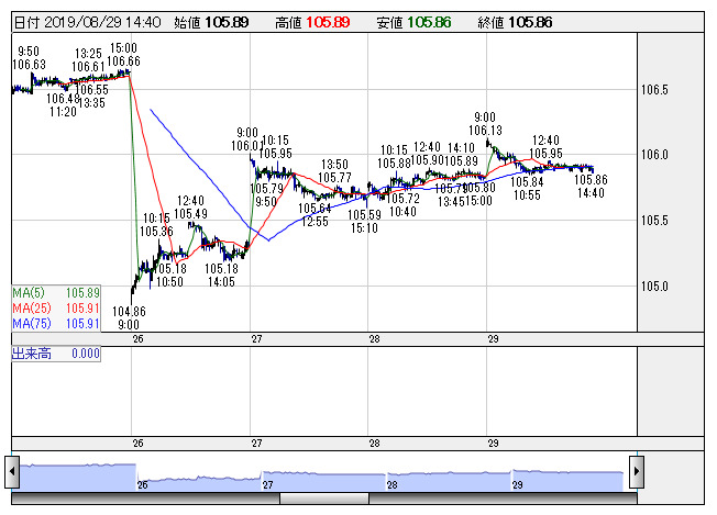 2019年08月29日15時01分 【通貨】外為:1ドル105円86銭前後とドル高・円安で推移 米ドル/円 <5分足> 「株探」多機能チャートより 29日の外国為替市場のドル円相場は午後3時時点で1ドル=105円86銭前後と、前日午後5時時点に比べ13銭のドル高・円安。ユーロ円は1ユーロ=117円31銭前後と4銭のユーロ高・円安と横ばい圏で推移している。 株探ニュース