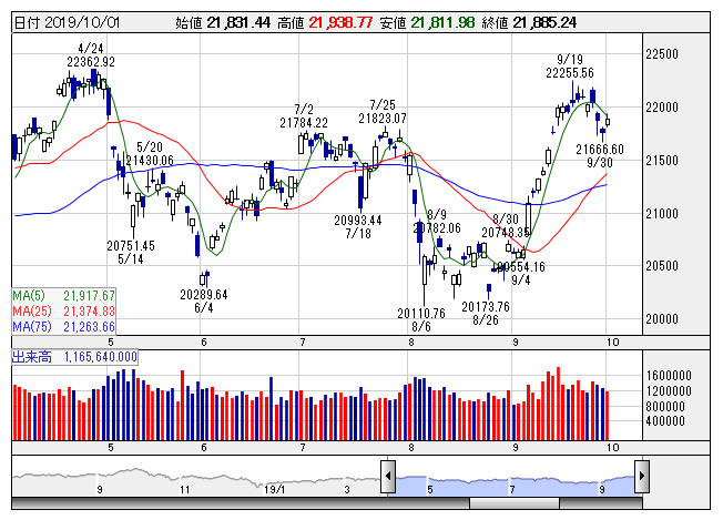 日経平均 <日足> 「株探」多機能チャートより[強弱材料]