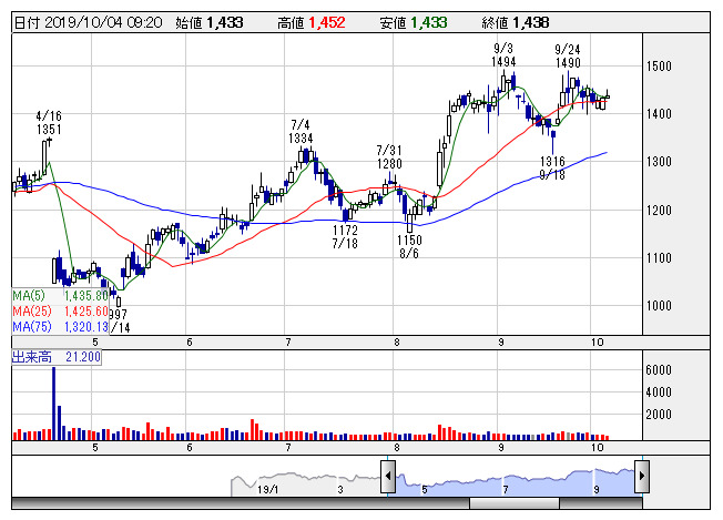 アルテリア <日足> 「株探」多機能チャートより■財務省 : 10月4日受付