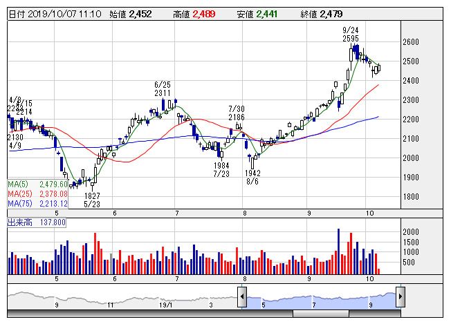 関西ペ <日足> 「株探」多機能チャートより■財務省 : 10月7日受付