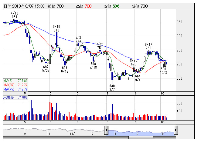 キッツ <日足> 「株探」多機能チャートより■財務省 : 10月7日受付