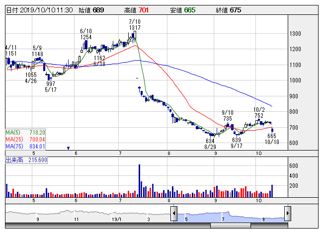 ATAO <日足> 「株探」多機能チャートよりATAO神戸本店及びIANNE神戸店を大幅拡張リニューアルし、同社グループが展開するすべてのコンテンツ及び限定品を取り扱う総合ショップ「アタオランド」をオープンしたことで店舗販売が好調に推移した。ただ、販売促進費など販管費も上昇し利益を圧迫した。