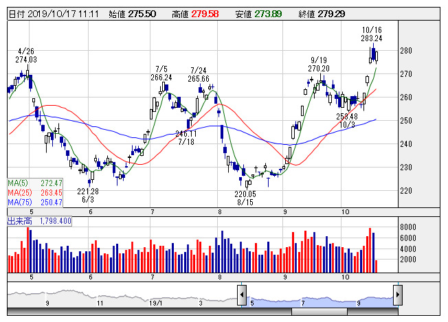 海運業 <日足> 「株探」多機能チャートより●東証1部33業種 値上がり: 7 業種 値下がり: 26 業種