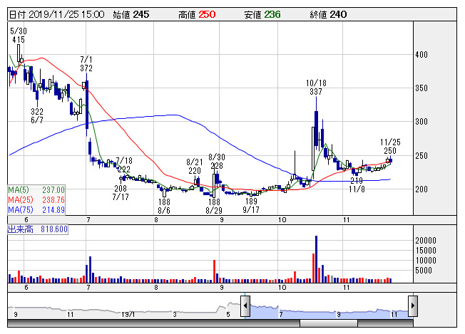 アクロディア <日足> 「株探」多機能チャートより■財務省 : 11月25日受付