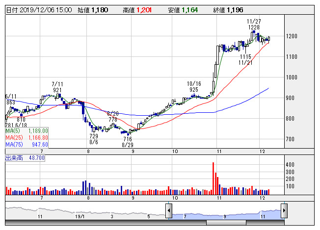 サンワテク <日足> 「株探」多機能チャートより■財務省 : 12月6日受付