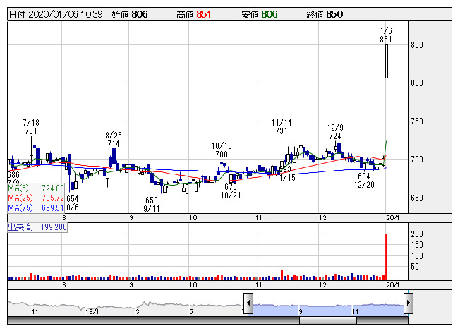 2020年01月06日12時14分 【材料】<みんかぶ・個人投資家の予想から>=「買い予想数上昇」2位に重松製 重松製 <日足> 「株探」多機能チャートより 「みんなの株式」が集計する「個人投資家の予想(最新48時間)」6日午前11時現在で、重松製作所<7980>が「買い予想数上昇」2位となっている。 重松製が大幅に4日続伸で昨年来高値を更新した。株価は一時150円高のストップ高に買われた。中東情勢の緊迫感が高まっていることから防衛関連銘柄として位置付けされる同社に買いが流入している。 出所:MINKABU PRESS 最終更新日:2020年01月06日 12時24分