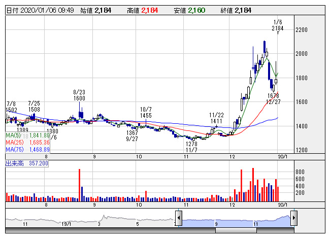2020年01月06日12時46分 【材料】<みんかぶ・個人投資家の予想から>=「買い予想数上昇」2位に石川製 石川製 <日足> 「株探」多機能チャートより 「みんなの株式」が集計する「個人投資家の予想(最新48時間)」の6日正午現在で、石川製作所<6208>が「買い予想数上昇」2位となっている。 米国とイランの間で軍事的緊張が高まっていることで、全体相場は地政学リスクが強く意識され全体相場は波乱展開を強いられているが、一方で防衛関連株に位置づけられる銘柄は石川製を筆頭に軒並みストップ高に買われる人気となった。ただ、マネーゲーム的な要素が強く、市場では持続性には疑問符が付くとの見方もある。 出所:MINKABU PRESS