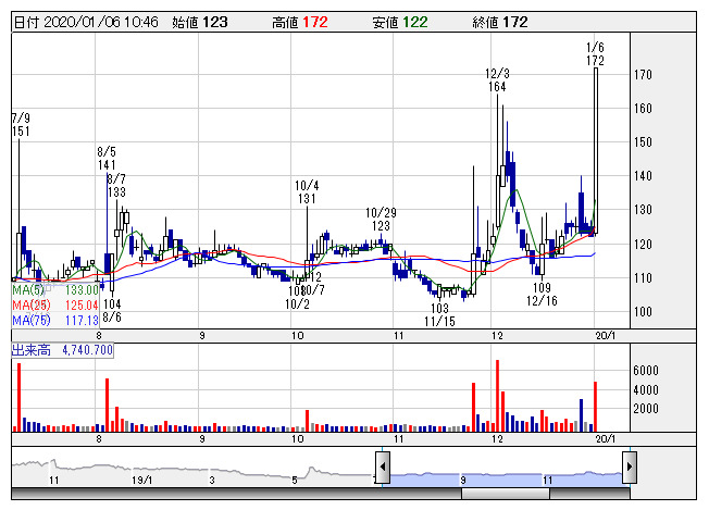 CESへの出展で、同製品に対する認知度は一気に高まることが期待されており、株価はストップ高の172円に上昇。後場終盤になってもなおも買いを集めていることが買い予想数の上昇につながっているようだ。