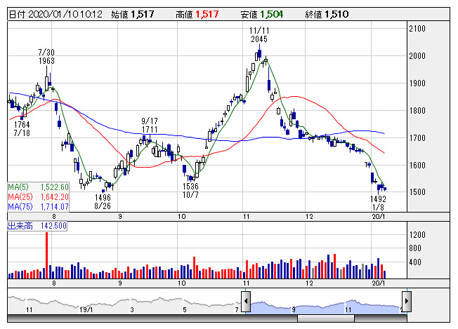 ツバキナカ <日足> 「株探」多機能チャートより■財務省 : 1月10日受付