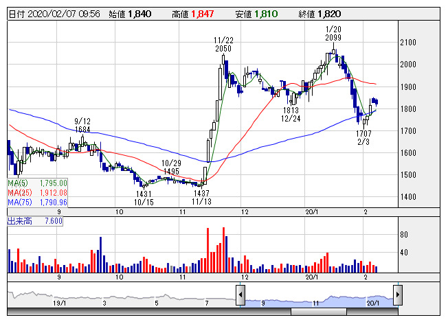 相模ゴ <日足> 「株探」多機能チャートより■財務省 : 2月7日受付