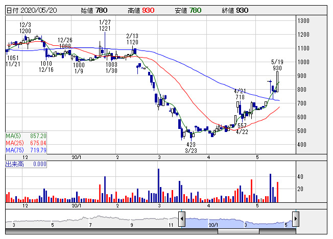 前日にストップ高を演じたソフィア <6942> が前場はストップ高買い気配のまま取引を終えた。また、「ECプラットフォームが巣ごもり消費で脚光」と報じられたBASE <4477> は一時ストップ高まで買い進まれた。