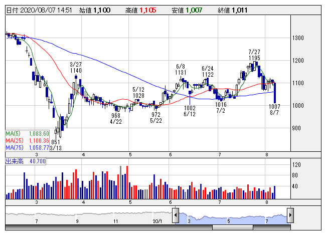北越工 <日足> 「株探」多機能チャートより■財務省 : 8月7日受付