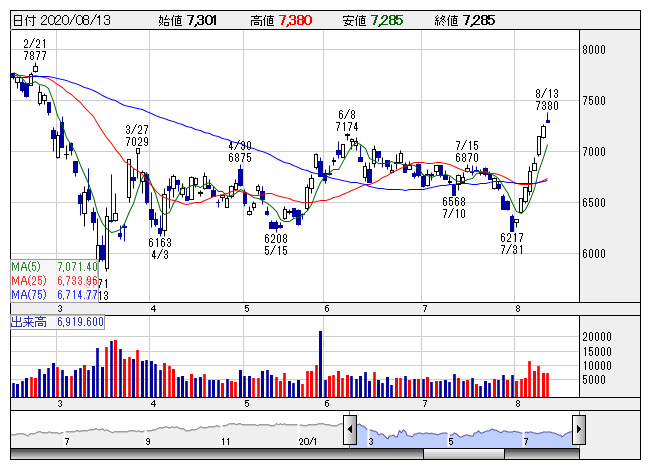 <7012> 川重 5.89ドル 1574円 (20円) +1.29%