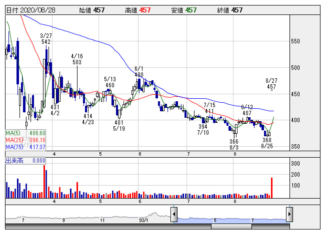 【材料】本日の【ストップ高/ストップ安】 前場 S高= 7 銘柄 S安= 2 銘柄 (8月28日)