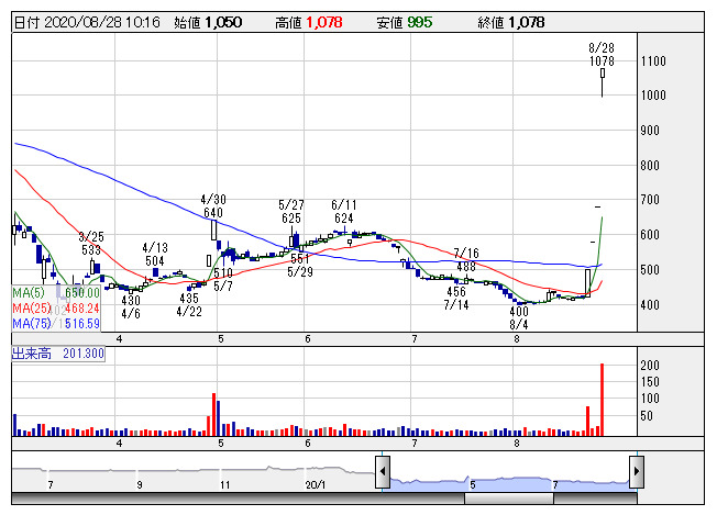 【材料】前場のランキング【値上がり率】 (8月28日)