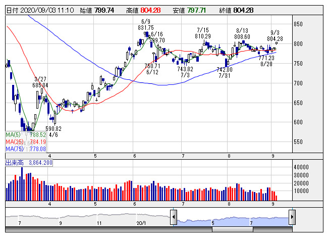 非鉄金属 <日足> 「株探」多機能チャートより●東証1部33業種 値上がり: 31 業種 値下がり: 2 業種