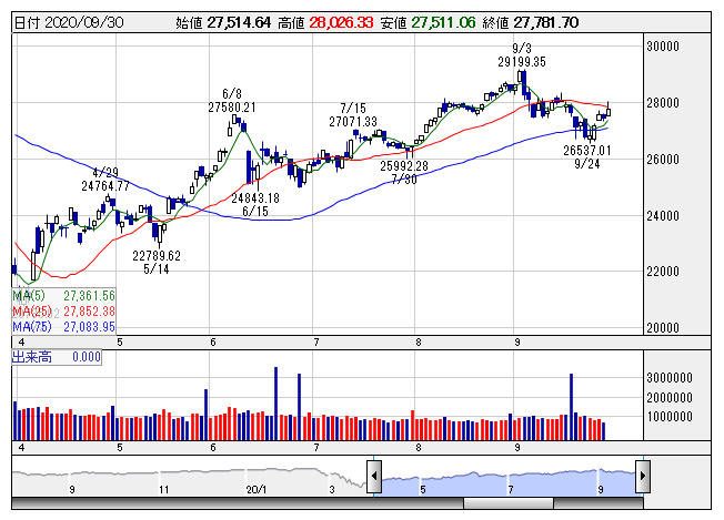 電気トラックメーカーのニコラ(NKLA)は戦略的提携を発表している自動車会社のゼネラル・モーターズ(GM)が同社株の保有を当初の予定より増やす意向を示したことが好感され急伸。電気自動車のテスラ(TSLA)は第3四半期の売上が過去最高を記録したとの思惑から上昇した。クルーズ運営のカーニバル(CCL)やロイヤルカリビアン(RCL)はアメリカ疾病管理予防センター(CDC)による運行停止を来年まで延長する計画を政府が却下し、10月までとしたことが好感され軒並み上昇。一方、半導体のマイクロン(MU)は好調な決算にもかかわらず中国ファーウエイへの出荷停止が重しとなっていることが明らかになり下落した。