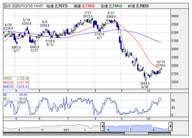 <9433> KDDI 2764.5 +20.5 ( +0.8%) 2751.5